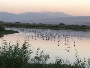 1. During our hour-long visit to the Hula Preserve, we watched thousands of birds land to rest for the night along their migration route. The air was filled with the calls of cranes and the dramatic flight of thousands of birds of many varieties. After our visit, we read “I Want Always to Have Eyes to See” by Natan Zach, excerpted here: